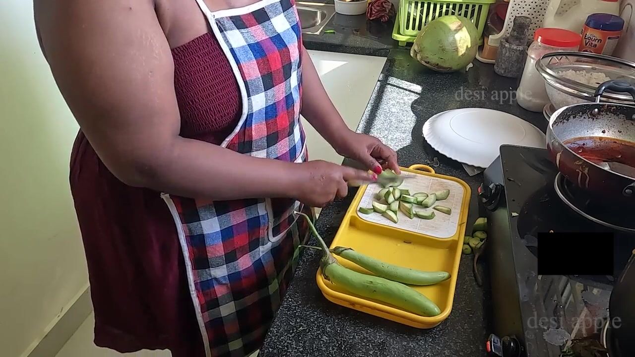MY INDIAN GIRLFRIEND FUCKING WITH BRINJAL IN KITCHEN WHEN SHE IS ALONE AT HOME