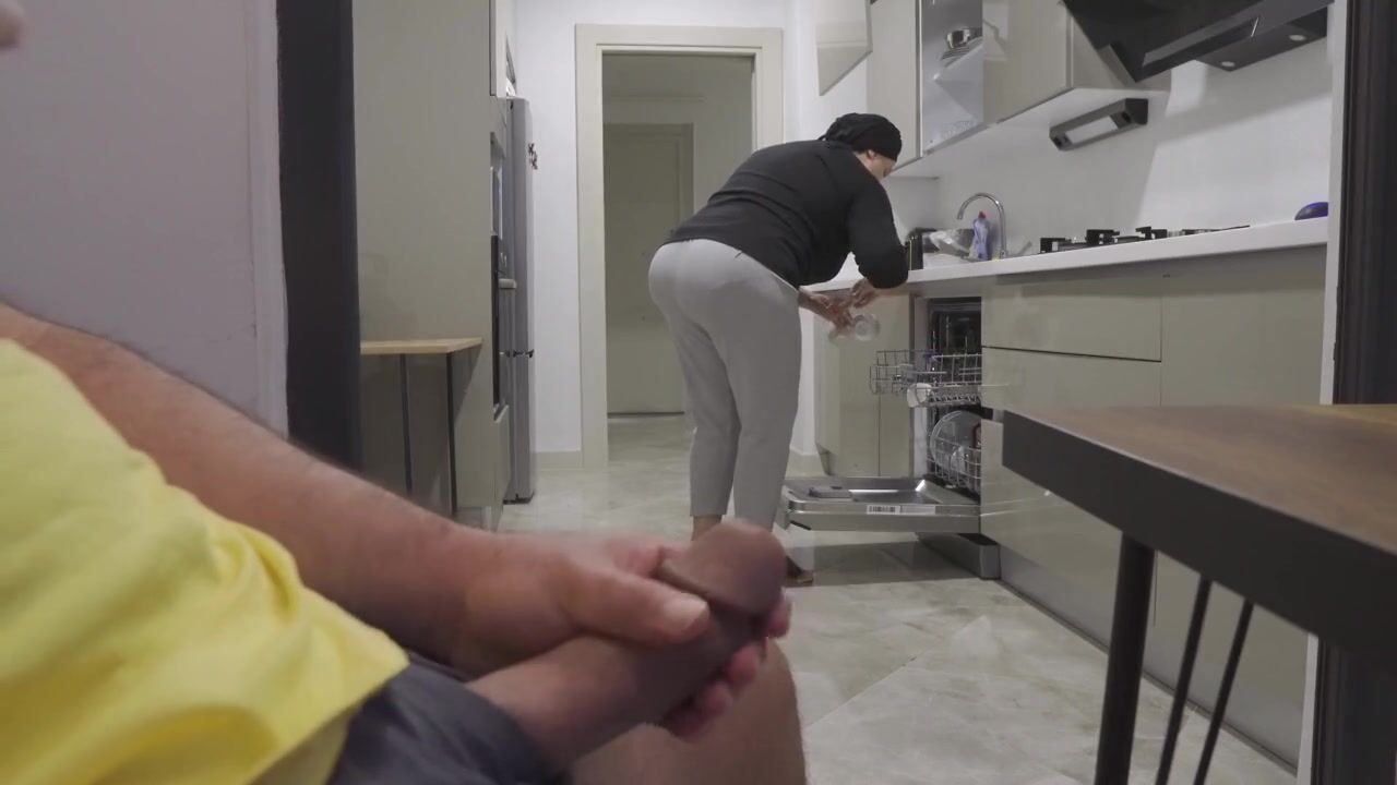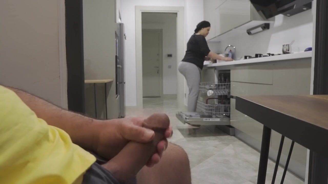 STEPMOM CAUGHT ME JERKING OFF WHILE WATCHING HER ASS IN THE KITCHEN.