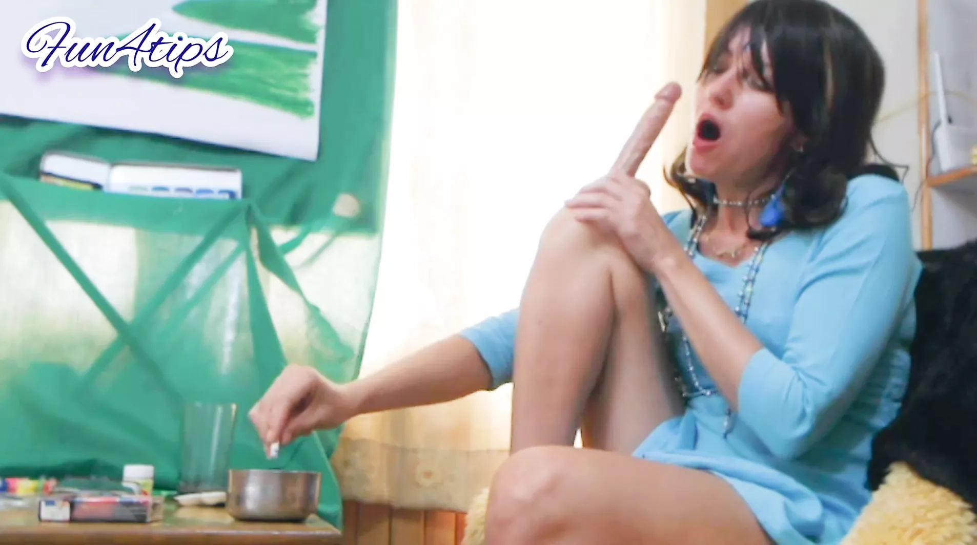 SMOKING AND SUCKING DILDO AS WELL.