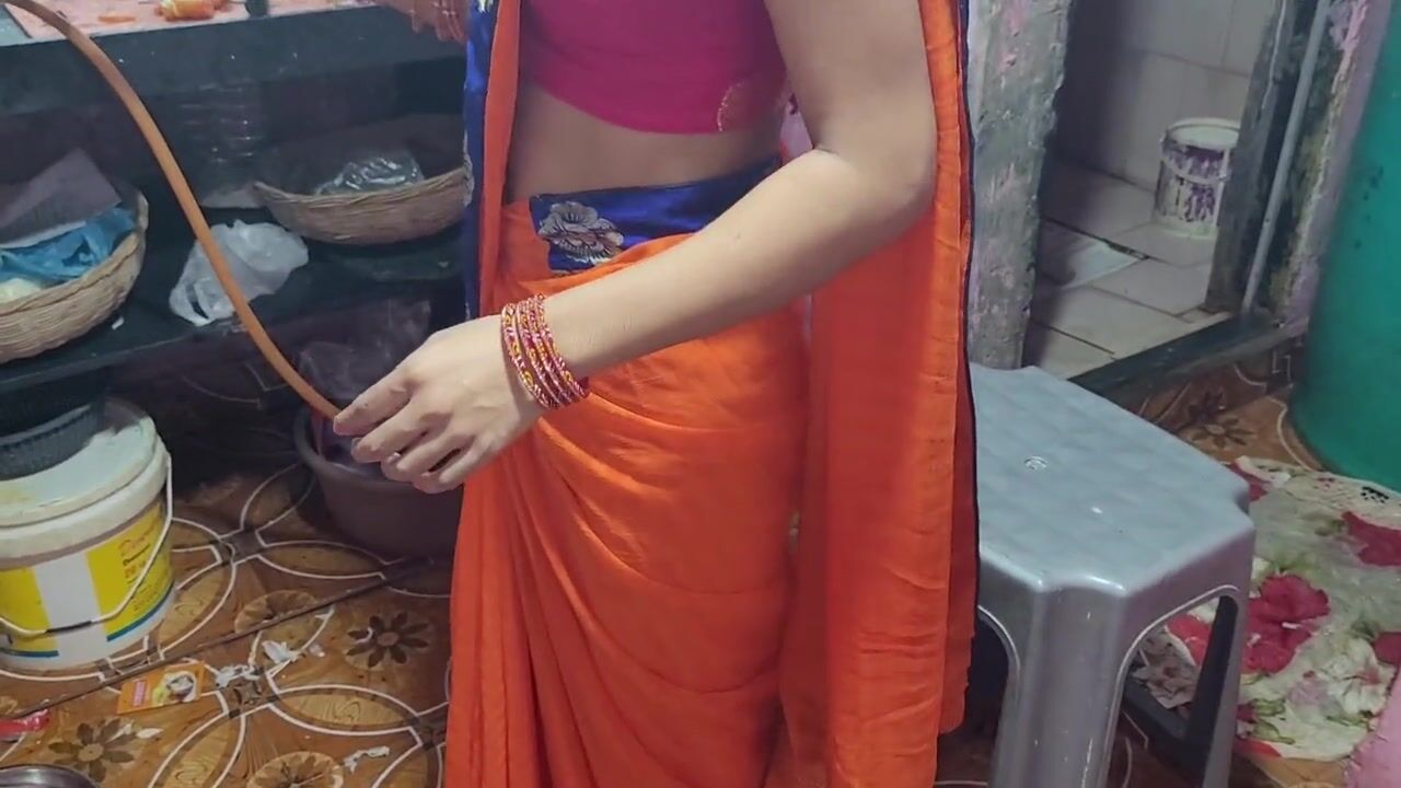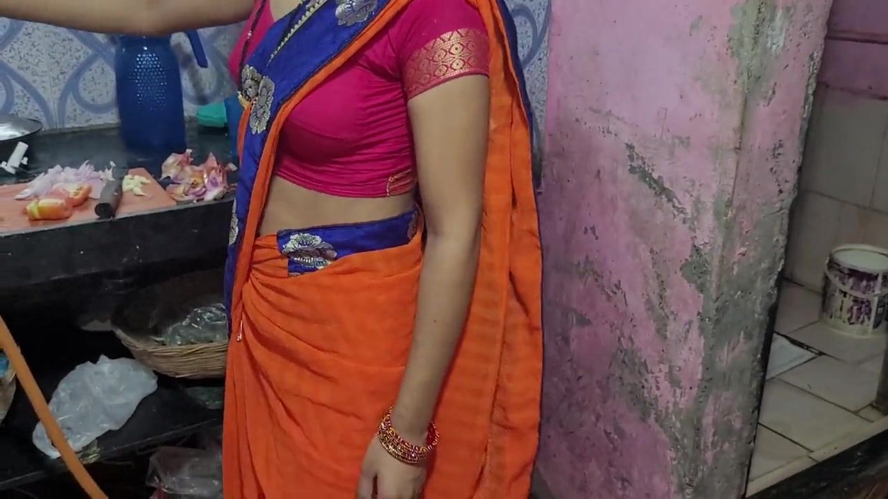 . Kitchen sex with husband bhabhi hot saree wearing sexy bhabhi hard fucking in kitchen